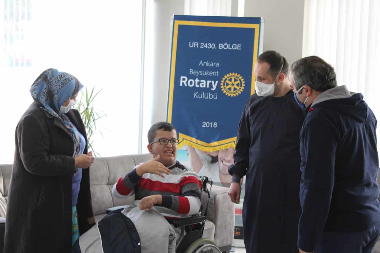 Beysukent Rotary Kulübü, 3 Aralık Dünya Engelliler Günü’nde “Engelsiz Dişler” Projesini gerçekleştirdi. Serebral Palsi hastası olanların ağız ve diş sağlığı kontrollerini yapıldı. Tedaviye ihtiyacı olan kişiler için program oluşturuldu ve tedavilerine başlandı. Yıllardır korktuğu için tedavisini yaptırmayan Hasan dostumuz, kulüp üyesi Dt. Necmettin Yeta’nın koltuğunda rahatça muayene oldu. Yüreğe dokunan bu anlamlı proje için Engelsiz Dişler Komite Başkanı Uzman Diş Hekimi Necmettin Yeta kliniğini bu özel gün için kapattı. Kendisine ve Uzman Diş Hekimi Rtn. Eşi Elif Naz Yeta’ya Beysukent Rotary kulübü üyeleri teşekkür ettiler.