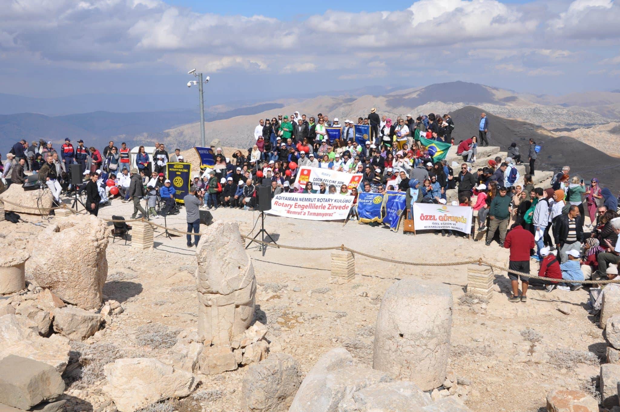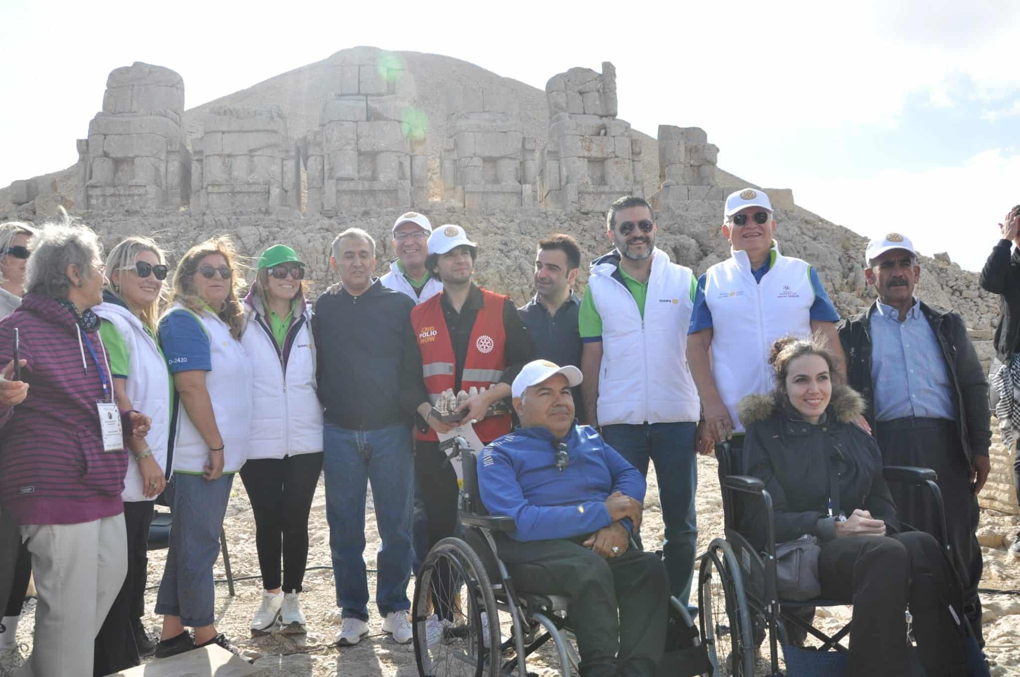 23-25 Eylül tarihleri arasında uluslararası boyutta gerçekleştirilen “Rotary Engellilerle Zirvede Nemrut’a Tırmanıyoruz” projesi kapsamında bu yıl Nemrut Dağının zirvesinde düzenlenen etkinliklere Ankara, İstanbul, Çorlu, İzmir, Eskişehir, Adana, Mersin, Gaziantep, Malatya, Samsun ve bir çok ilin yanı sıra ABD, Mexico, Brezilya, Polonya, Nijerya ve Arjantin gibi ülkelerden gelen yüzlerce misafir Exchange Değişim Programı Öğrencileri, Rotaryenler, Engelliler ve engelli derneklerinin yanı sıra vatandaşların katıldı.