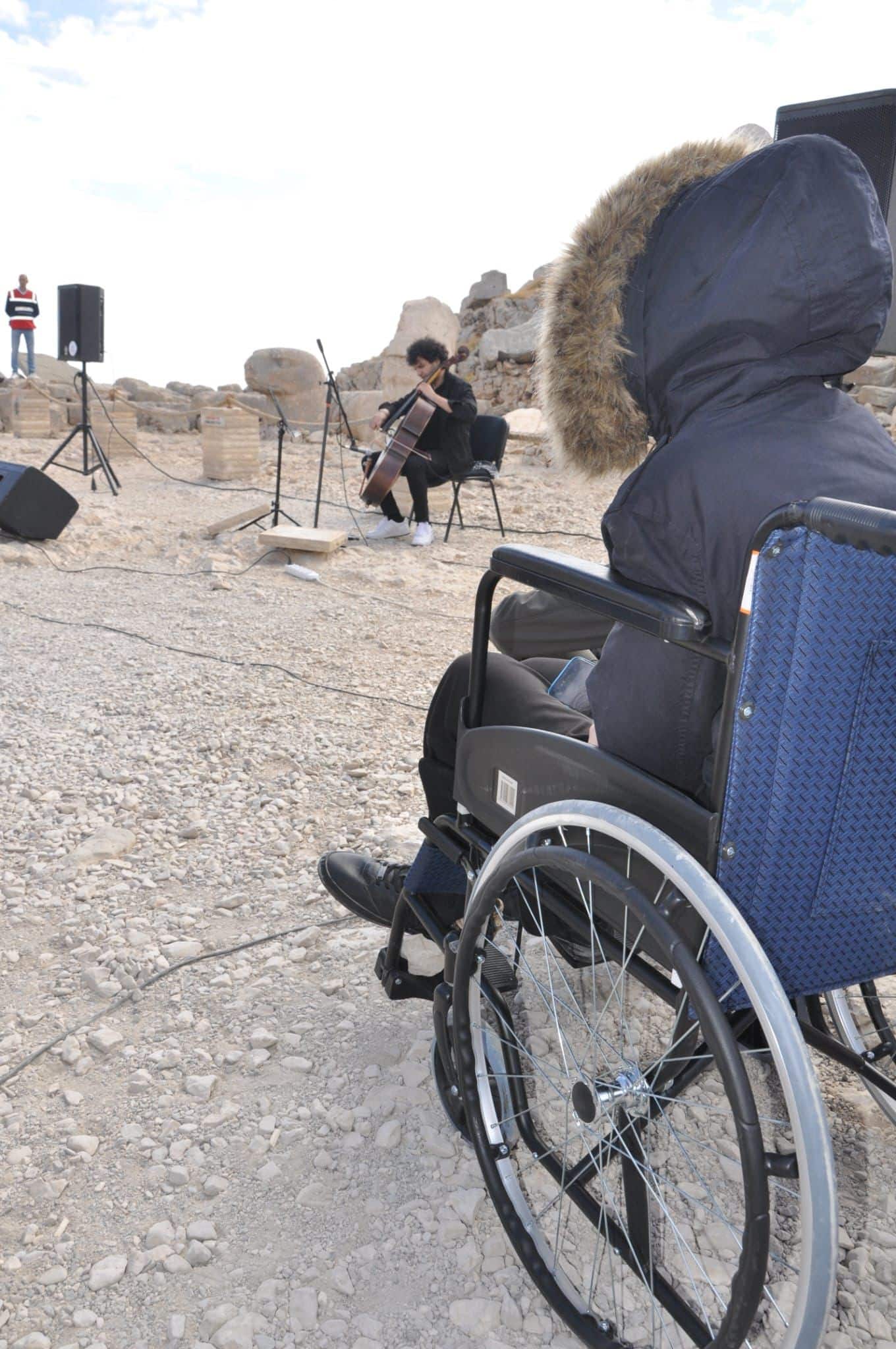 Konser için Adıyaman’a gelen çello sanatçısı Jamal Aliyev de engellilerin zirveye zorlu tırmanışına yardım etti.