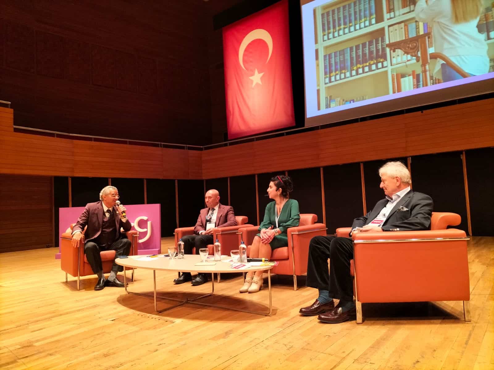İzmir Büyükşehir Belediyesi, İzmir Atatürk Lisesi Mezunlar Derneği ve Kordon Rotary Kulübü Cumhuriyetimizin 100. yılında gelecek yüzyıl üzerine düşüncelerin öngörülerin ve farklı bakış açılarının paylaşıldığı “dİALog 2023“ panelinde Türkiye’nin önde gelen isimlerini bir araya getirdi. İzmir Atatürk Lisesi Mezunlar Derneği Başkanı Murat Saraç’ın yaptığı açılış konuşmasının ardından Kordon Rotary Kulübü Başkanı Erdinç Özdeker İzmir Atatürk Lisesi’ne yapılması planlanan Kodlama Atölyesi fikri ile başlayan yolculuğun yeni yüzyılı şekillendirecek panele dönüşme hikayesini anlattı.