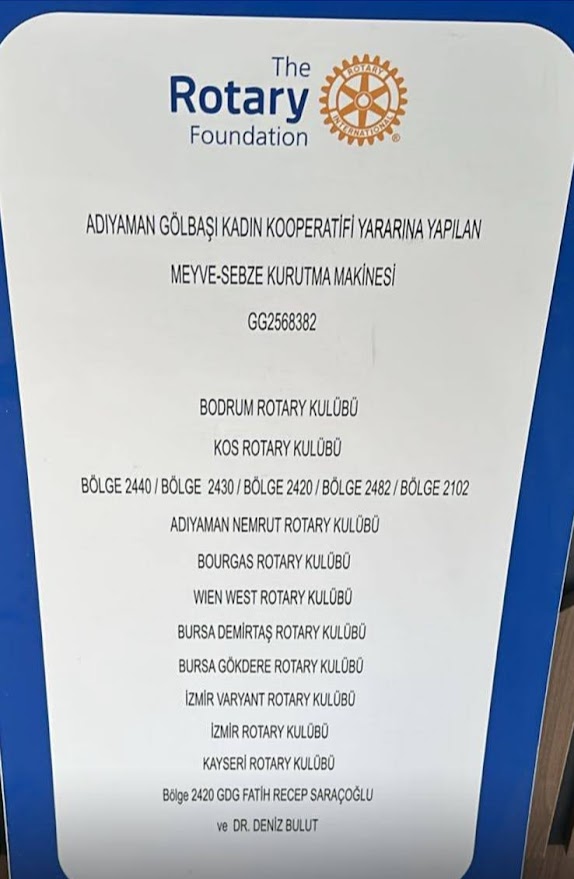Rotary Bölge 2440 Federasyonuna bağlı Bodrum Rotary Kulübünün (GG2568382) Küresel Bağış Projesi kapsamında Nemrut Rotary Kulübü ve bir çok Rotary kulübünün desteği ve iş birliğiyle Adıyaman Gölbaşı Kadın Kooperatifine kazandırılan Yaş Meyve ve Sebze Kurutma Tesisi törenle hizmete açıldı. Asrın felaketi olarak adlandırılan 6 Şubat depremlerinde büyük yıkım yaşayan Gölbaşı’nda, kadınların üretim gücünü yeniden ayağa kaldıran bu tesis, bölge için yeni bir umut kapısı oldu. Açılışa Bölge 2440 Federasyonu Başkanı Adnan Sözeri, Geçmiş Dönem Federasyon Başkanı Mert Korur, Bodrum Rotary Kulübü Başkanı Ömer Başbuğ, Guvernör Yardımcısı Şehval Öztürk, Yunanistan Kos Rotary Kulübü’nden Alexandros Papoulis, Nemrut Rotary Kulübü Proje Sorumlusu Ferit Binzet, Gölbaşı Ziraat Odası Başkanı Cuma Ali Araş, Gölbaşı Kadm Kooperatifi Başkanı Emine Köseler, kadın üreticiler, rotaryenler ve çok sayıda davetli katıldı. Depremde her şeyini kaybettiklerini anlatırken duygusal anlar yaşayan Gölbaşı Kadın Kooperatifi Başkanı Emine Köseler, destek veren tüm Rotary kulüplerine teşekkür etti. Bodrum Rotary Kulübü Başkanı Ömer Başbuğ, deprem bölgesine kalıcı bir eser bırakmanın gururunu yaşadıklarını vurguladı. Bölge 2440 Federasyonu Başkan Yardımcısı Şehval Öztürk, açılış konuşması sırasında duygusal anlar yaşadığını belirterek: “Depremden sonra sıfırdan böyle bir mekânın kurulması, makinenin teslim edilmesi, kadınlara yeniden üretim gücü kazandırılması tarifsiz bir duygu. Kadın dayanışması her yerde güzellik getirir. Emine Başkanımın emeği olmasaydı buraya bu noktaya gelemezdik. Bu kooperatifi yaşatacak bütün kadınları kutluyorum.” dedi. Rotary Bölge 2440 Federasyonu Başkanı Adnan Sözeri ise bölgeye desteklerinin süreceğini vurgulayarak: “Deprem hepimizin yüreğinde derin yaralar açtı. Ama bizler Türkiye rotasıyla hareket ederek her zaman yanınızda olacağız. Bu proje, kadın istihdamına ve üretimine büyük katkı sağlayacak. Kos Rotary Kulübü’yle birlikte hazırladığımız bu anlamlı projeyi bugün hayata geçirmekten gurur duyuyoruz.” ifadelerini kullandı. Deprem bölgesinde yeniden ayağa kalkmanın sembolü Gölbaşı Kadm Kooperatifı’nde onlarca kadının üretim zincirine katılmasını sağlayacak bu tesis, deprem sonrası bölgede kadın emeğinin yeniden canlanmasına öncülük edecek. Meyve ve sebze kurutma tesisi, hem ekonomik hem sosyal açıdan kadınların güçlenmesini hedefleyen önemli bir dayanışma örneği olarak kayıtlara geçti.