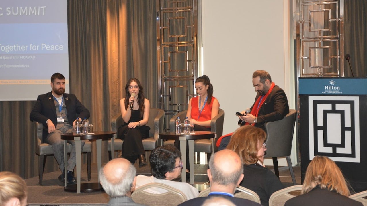 Rotary Barış Elçisi Linda Low, IEP-Ekonomi ve Barış Enstitüsü Temsilcisi GDG Jamil Mouawad, Rotary Pozitif Barış Aktivatörü Maria-Vittoria Gargiulo katıldıkları panelde temsil ettikleri kurumları tanıttılar ve faaliyetleri hakkında bilgi verdiler.
