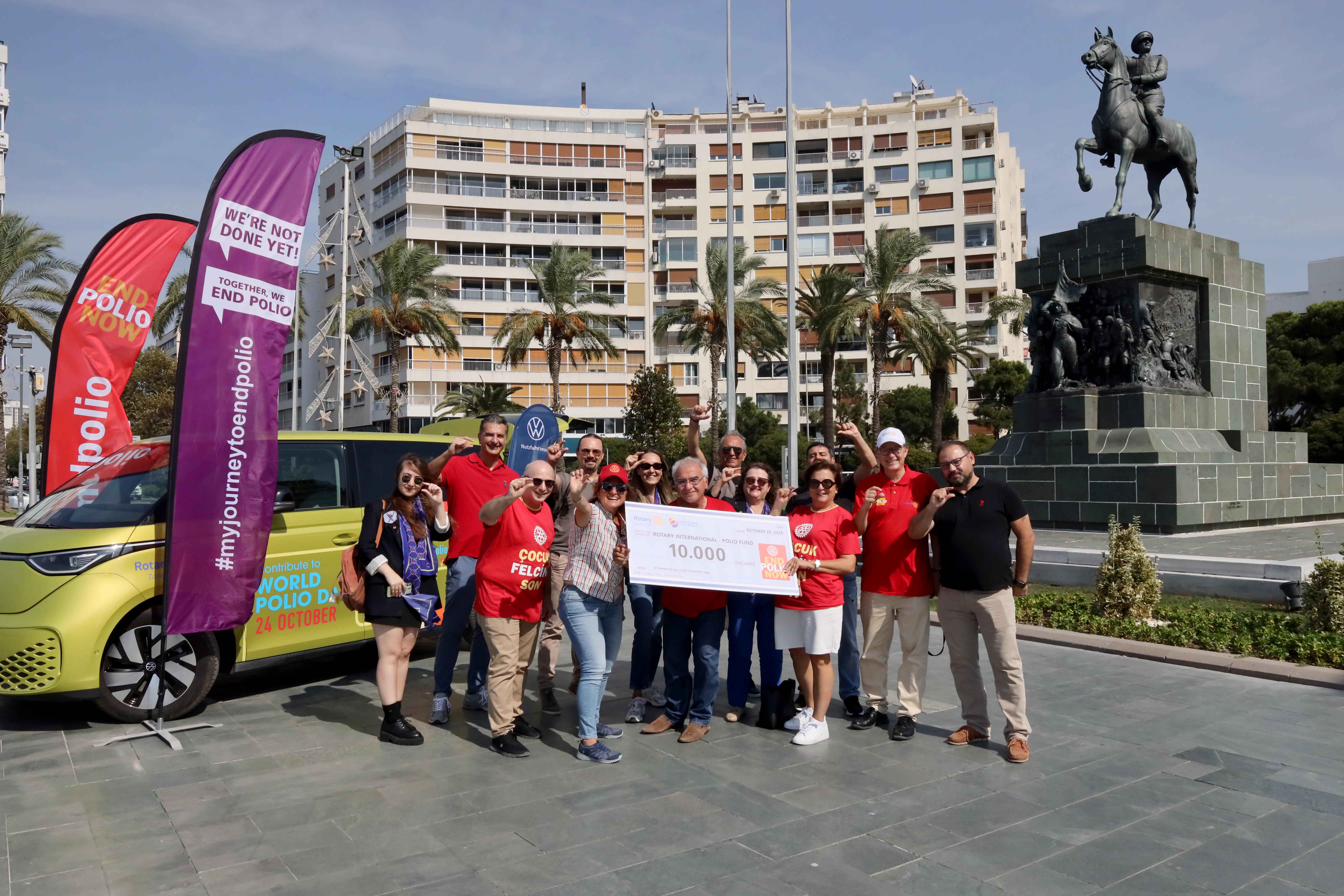 - Bölge Rotaryenleri, hedefi “Küresel çocuk felcinin ortadan kaldırılmasını desteklemek” olan “Çocuk Felcine Son Yolculuğum” etkinliğine destek olmaya devam ediyor. 16 Avrupa ülkesini kapsayacak bu tur kapsamında İzmir’e gelen Bashar Asfour’u ağırladıklarını söyleyen Uluslararası 2440. Bölge Rotary Federasyonu Başkanı Ayda Özeren, “Farkındalık turunu desteklemek adına Asfour için 10 bin dolar bağış topladık. Dünyada çocuk felcini yok etmeye çok yakınız. O sebeple bu destekler çok önemli” dedi.