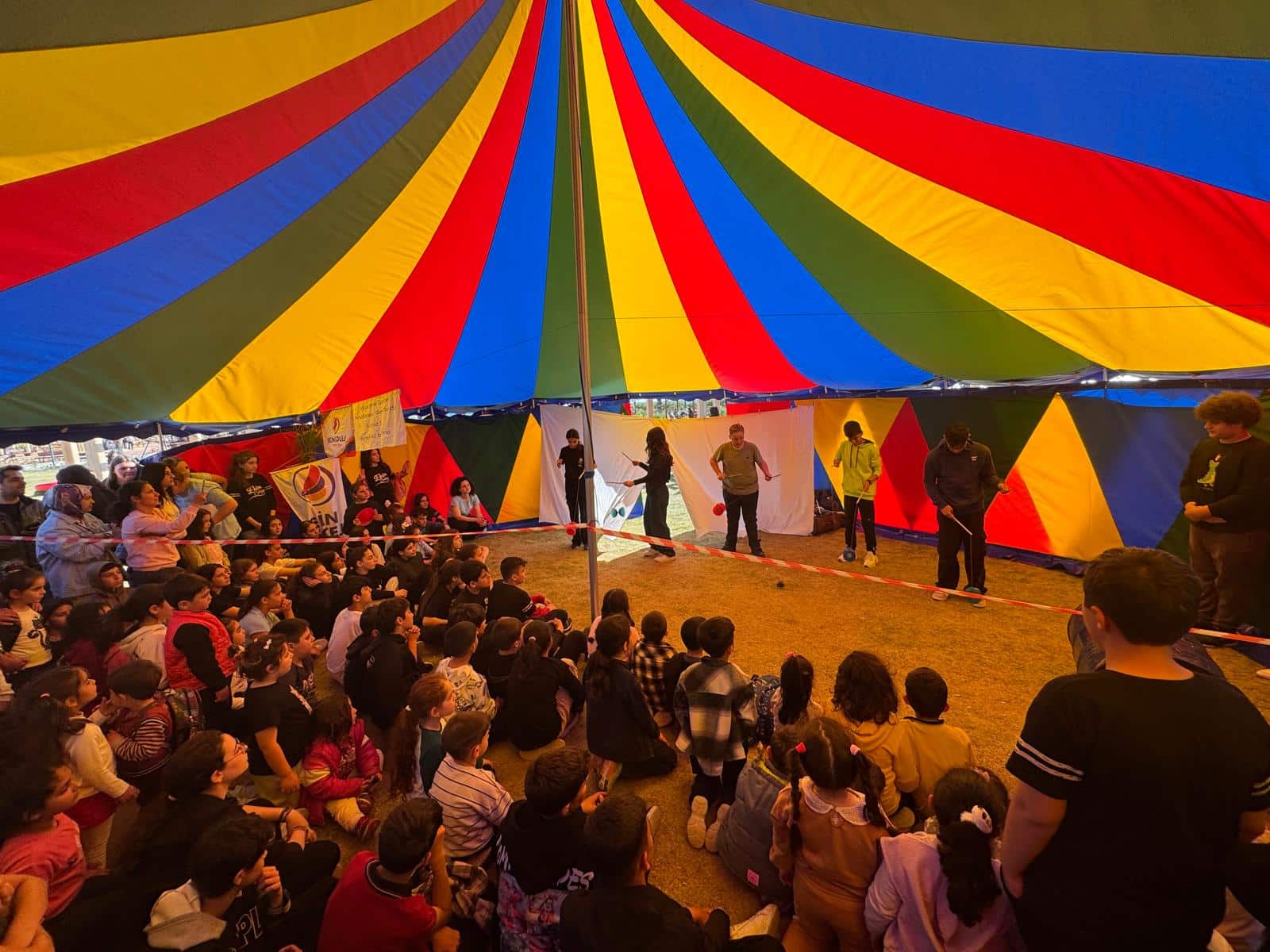 Renkli, büyük bir sirk çadırı, Akdeniz güneşi altında gökkuşağı renklerinde parladı. Geniş bir kumsalın önünde yeşil bir oyun alanında bir sirk çadırı yükseldi. Arkasında mavi ve turkuaz renklerde parlayan Akdeniz vardı. Çocukların kendilerinin kurduğu çadır, neşeli kahkahalarla dolup taşıdı. Almanya’dan on altı çocuk ve Türkiye’den otuz sekiz çocuktan oluşan grup, deneyimli bir sirk pedagogu olan Thomas Jansen tarafından yönetildi. Yanında bir meslektaşı ve Krefeld’den gelen çocuklarla birlikte “Schwesterherzen-Krefeld hilft e.V.” derneğinin dört kurucu üyesi vardı. Türk çocuklar, dört yerel okuldan katılım sağladılar. Birlikte büyük bir izleyici kitlesine yönelik bir sirk gösterisi için antrenman yaptılar. Gösteri sadece üç gün içinde “hazır” olmalıydı. Önceden tanışmayan Almanya ve Türkiye’den gelen çocuklar, ilk dakikalardan itibaren harika bir şekilde arkadaşlık kurdular. Kısa bir antrenman sonrasında, ustaca jonglör toplarını birbirlerine attılar veya dönen tabakları esnek çubuklarla yakaladılar, yuvarlanan fıçıların üzerinde akrobatik olarak dengede durdular veya üç katlı insan grupları oluşturdular.