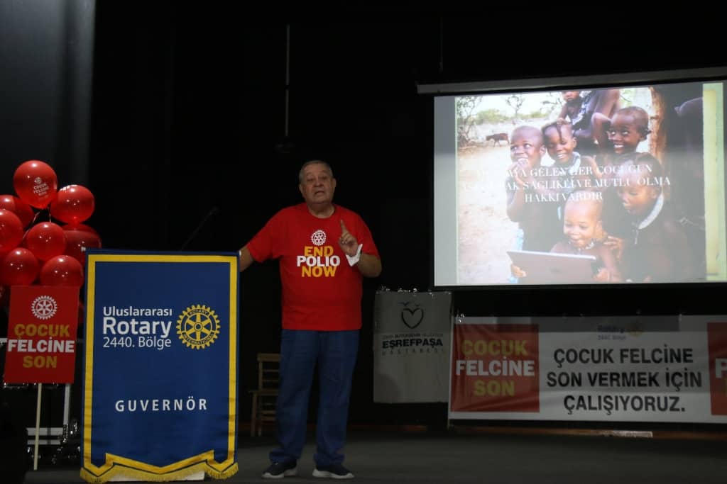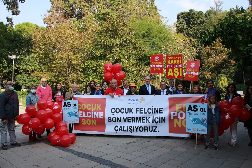 Rotary 2440. Bölge Kulüpleri Rotary’nin 1985 yılında tüm dünya çocuklarını çocuk felcine karşı aşılamayı hedefleyen tarihi bir kararla oluşturduğu Çocuk Felcini Yoketme Programı (Polio Plus) ile çocuk felcinin dünya üzerinden silinmesini hedef aldı. Dünya Polio Günü’nün çocukları aşılamak ve aşı farkındalığı oluşturmak için her yıl 24 Ekim tarihinde çeşitli etkinliklerle kutlandığı günde bu yıl devam eden Covid kürsel salgınının sona erebilmesi için Aşı olmanın önemine vurgu yapıldı.