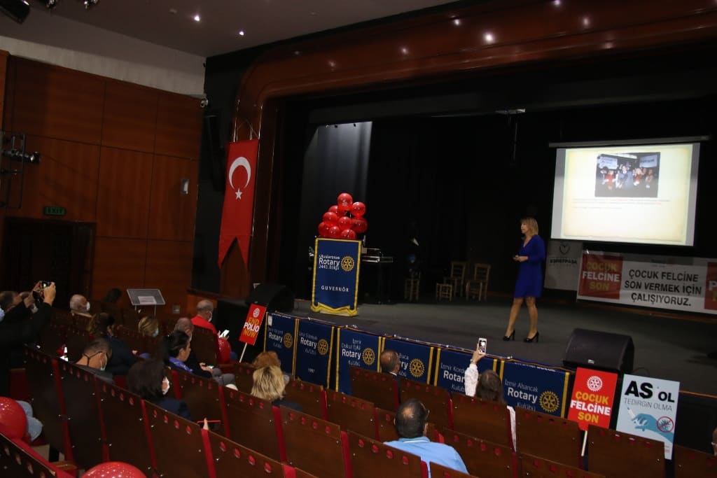İlk olarak Kültürpark İzmir Sanat’ta 9. Grup Kulüplerinin ortaklaşa düzenlediği seminerde Federasyon Başkan Yardımcısı Dr. Mustafa Kemal Nas, her yıl 1 milyondan fazla Rotaryen’in zamanları ve maddi katkıları ile Çocuk Felci’nin ortadan kalkmasına yönelik katıldıkları aşılama çalışmalarında sona gelindiğine vurgu yaparak, “Unutmayalım ki Aşı Hayat Kurtarır. Tüm insanlarımızı Covid’e karşı aşılanmaya davet ediyoruz” dedi. 9. Grup Kulüpleri adına konuşma yapan Varyant Rotary Kulübü Başkanı Hakan Yüksel ise kürsel olarak yapılan Polio Aşı çalışmaları sonucunda vakaların çok büyük oranda azaldığına dikkat çekerek 24 Ekim Dünya Polio Günü’nün Aşı farkındalığı oluşturmak için kutlandığını dile getirdi. Dokuz Eylül Üniversitesi Prof. Dr. Mehmet Ali Öktem, İzmir Eşrefpaşa Hastanesi Çocuk Sağlığı ve Hastalıkları Uzmanı Dr. Ebru Akar, İzmir Kent Konseyi Engelliler Meclisi Başkanı Abdülsamet Baskak’ın konuşmacı olarak katıldığı toplantıda Rotary Bölge Federasyonu ile birlikte 6 kulübün ortaklaşa aldığı 8 adet tekerlekli sandalye Engelli Derneklerine teslim edildi.